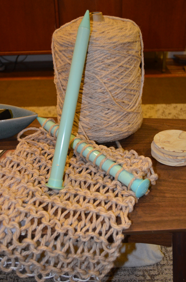 The instructions said to CO 15 stitches with the largest needles using the thickest yarn I had. I think I am good to go. I am knitting as much as I can this weekend, dye it some bright color Sunday night, dry it on Monday, and get to the right people Tuesday. There is going to be a yarn bombing (well, they call it and installation) and I am going to make a contribution.