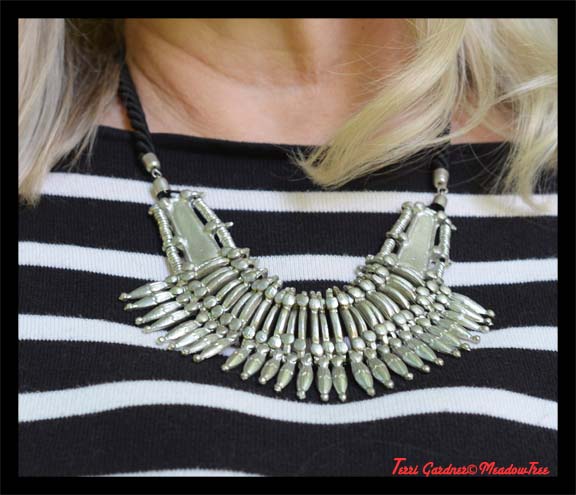| I added a modern necklace for this look. |