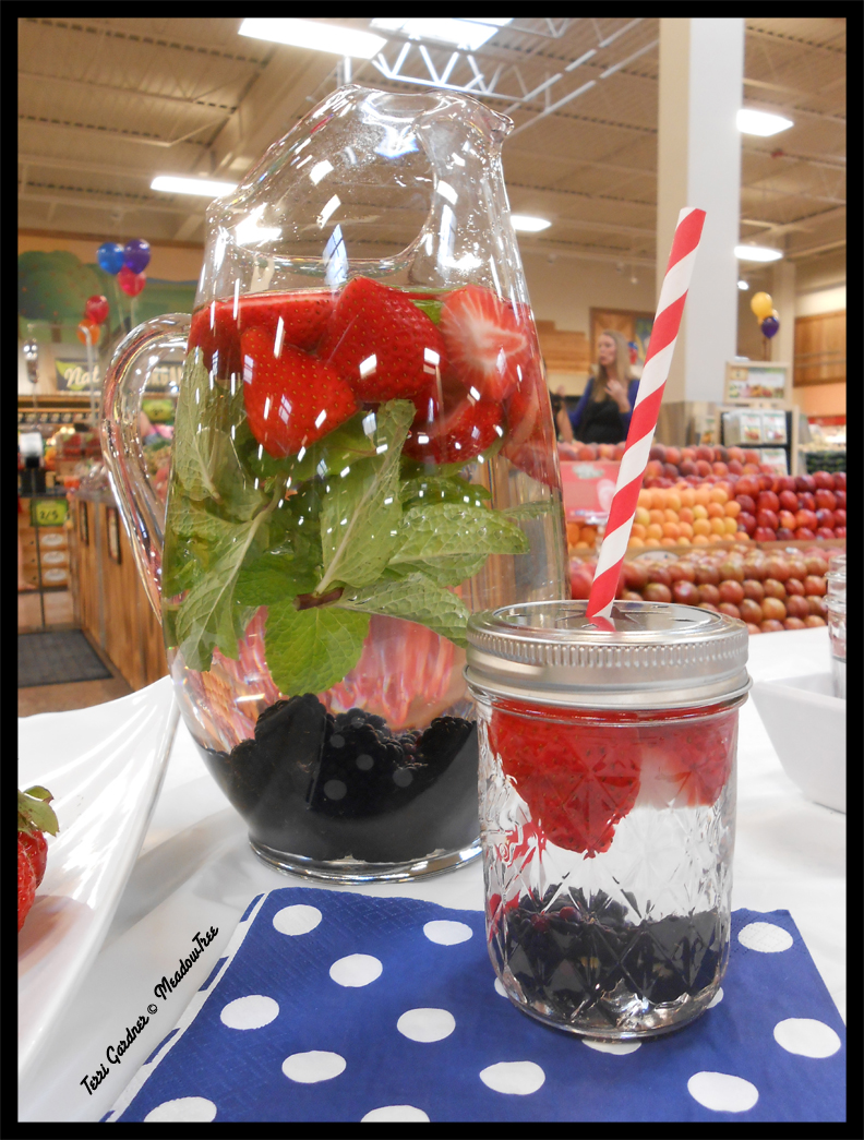 Have you done flavored water yet? It is one of my family’s favorites. For Memorial Day, we had watermelon and mint. At Sprouts we used strawberries and mint. I can’t say blackberries because they were only in there for decoration. I love the perforated lids for the jelly jars with straws. The cheapest I could find was at Oriental Trading at 12 for $10.