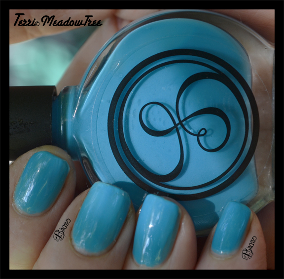 This print called for a dusty medium blue and I had it with Signet’s Blue Lagoon. Signet was an Indie polish that I just adored. It’s maker, Lauren, is from Mississippi and has that southern charm and hospitality the the South is famous for. She always listened to what her fans wanted and even let us name some of the polishes. Hey, I even won one of those contests. But small Indies have a tough time making it, and last summer Lauren hung up her mixing bottles and returned to her first love, which is ceramics.